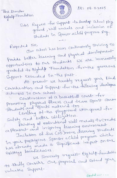Head Mistress of Zilla Parishad Girls High School, Hasanparhty, Warangal district, Telangana requested Bighelp to construct a basketball court for promoting physical fitness and team spirit among students.