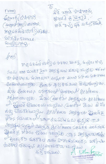 Head Mistress of Zilla Parishad Girls High School, Macherla, Palnadu district, AP requested Bighelp to give financial support to extend length of the auditorium in their school.