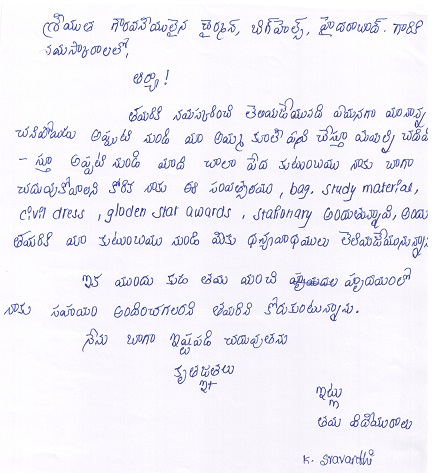 | Bighelp thanks Shanker Lingam Bajjuri for kindly sponsoring the education of Sravanthi Katla. |