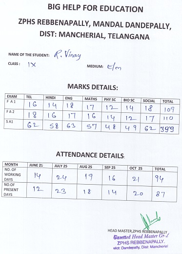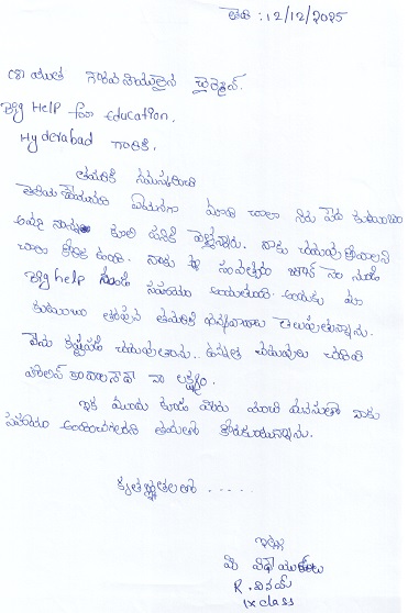 | Bighelp thanks Narasimha Midde for kindly sponsoring the education of Vinay Ramagiri. |