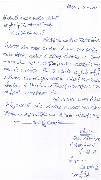 | Bighelp thanks Vipul and Dimple Kapadia for kindly sponsoring the education of Shiva Shankar Cherukupalli. |