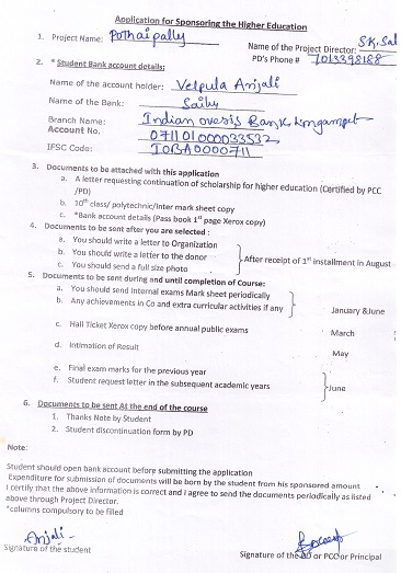 Bighelp thanks Ramakanth Reddy Mettu for kindly sponsoring the education of Anjali Velpula. |