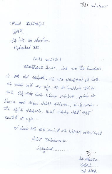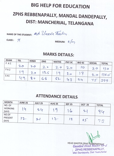 | Bighelp thanks Daya Shankar for kindly sponsoring the education of Umeria Thaslim Mohammad. |