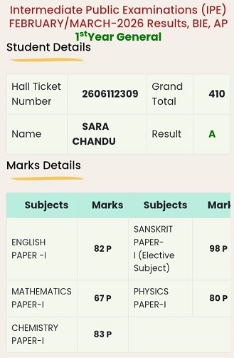 | Chandu Sara has passed 10th Grade with 544 Marks on