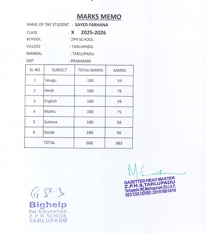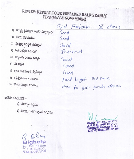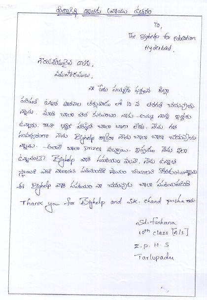 | Bighelp thanks Manoj Kumar Eswarappa for kindly sponsoring the education of Syed Farhana. |
