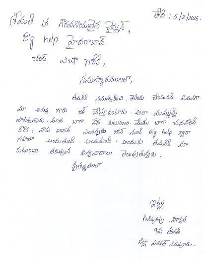 | Bighelp thanks Bighelp Brightstar for kindly sponsoring the education of Nireekshitha Siripurapu. |