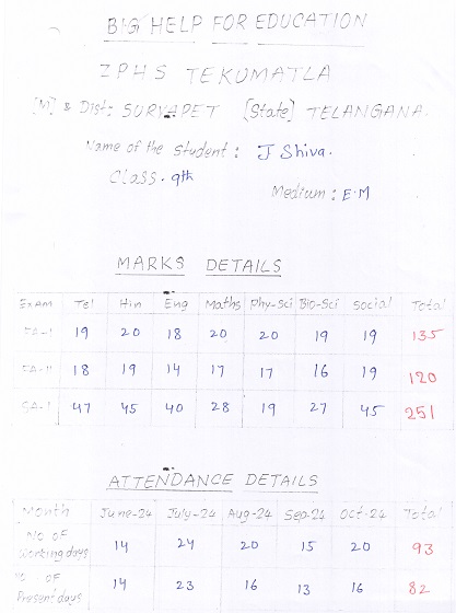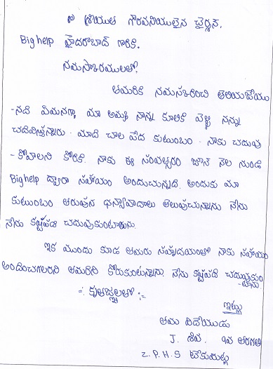 | Bighelp thanks Vennela Mittapalli for kindly sponsoring the education of Jala Shiva. |