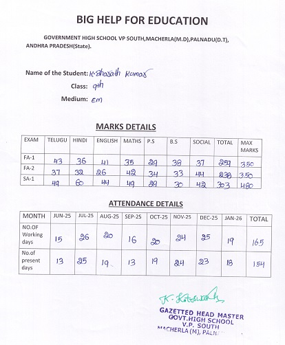 | Bighelp thanks Divya Reddy for kindly sponsoring the education of Bharath Kumar Kolli. |
