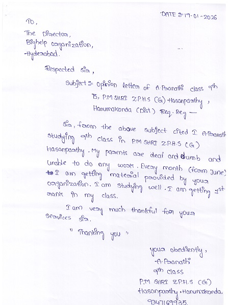 Bighelp thanks Punnam Kolluru for kindly sponsoring the education of Pranathi Adelli.