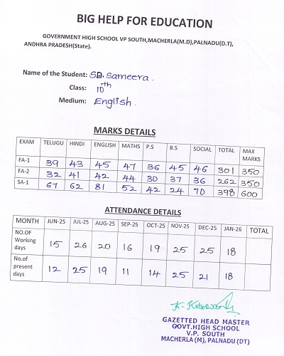 Bighelp thanks Sivaramakrishna Kandra for kindly sponsoring the education of Sameera Sayyad.