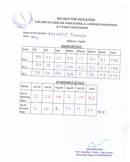 Bighelp thanks Manikyamba Immidisetti for kindly sponsoring the education of Varshini Devala.
