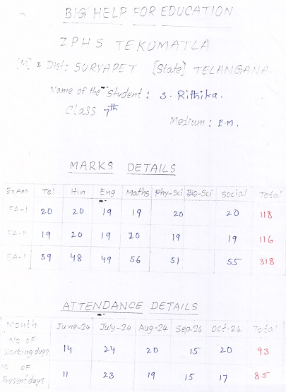 Bighelp thanks Nagi Reddy Janga for kindly sponsoring the education of Rithika Surarapu.
