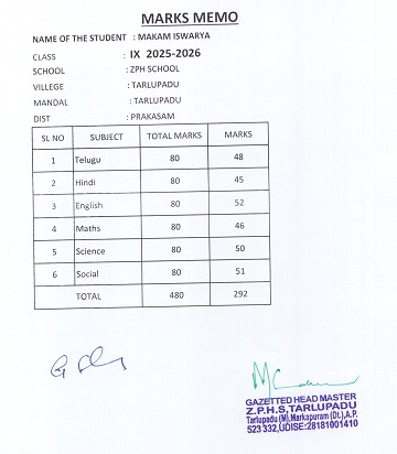 Zilla Parishad High School Tarlupadu Tarlupadu Tarlupadu Mandal Prakasam Dist. AP, India 523332 |