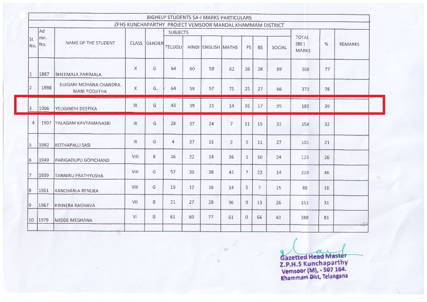 Zilla Parishad High School Kunchaparthy Vemsoor Mandal Khammam Dist. T.S, India 507164 |