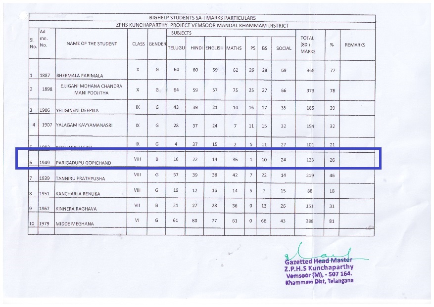 Zilla Parishad High School Kunchaparthy Kunchaparthy Vemsoor Mandal Khammam Dist. T.S, India 507164 |