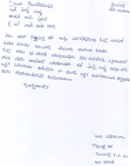 C/O Venkateswara rao Kothapalli Kunchaparthy Vemsoor Mandal Khammam Dist. T.S, India 507164 |