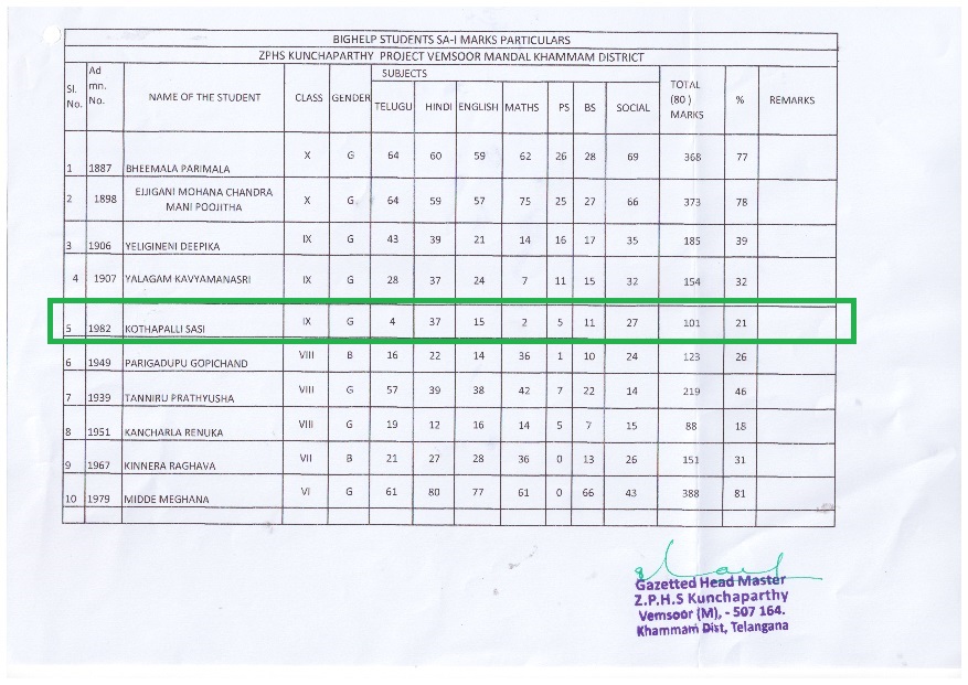 Zilla Parishad High School Kunchaparthy Kunchaparthy Vemsoor Mandal Khammam Dist. T.S, India 507164 |