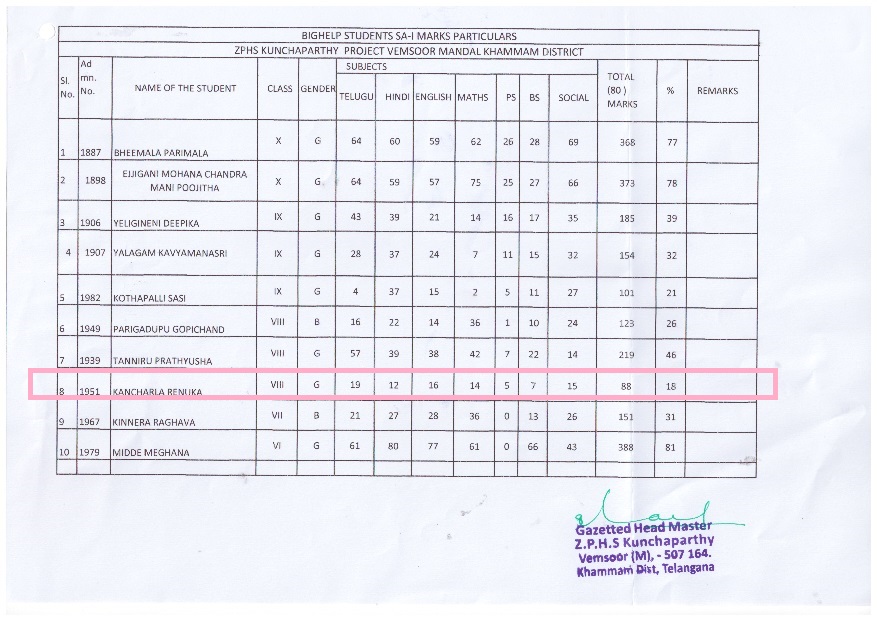 Zilla Parishad High School Kunchaparthy Kunchaparthy Vemsoor Mandal Khammam Dist. T.S, India 507164 |