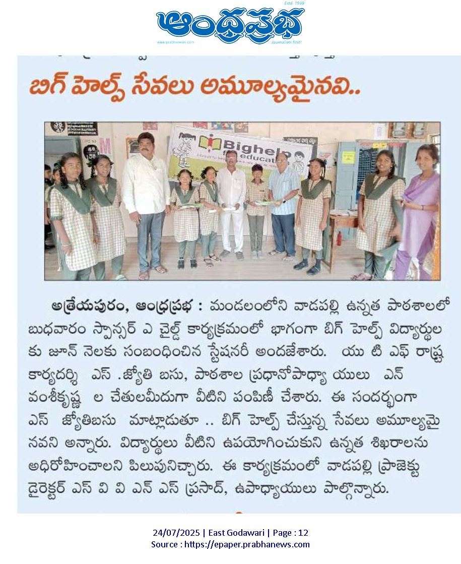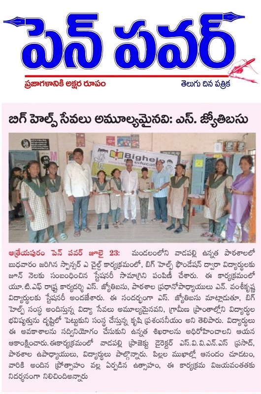 Bighelp Organised Green Day In Z.P.H.S Arvapally