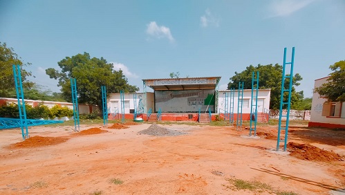 | The present strength of the school is 450 students. The school has a stage for performing cultural events, but the space in front of the stage lacks a roof, forcing students to stand in the sun. So the school headmaster requested Bighelp to construct an auditorium on the empty space in front of the stage. Bighelp came forward to construct an auditorium in front of the stage with the support of Bighelp Chairman Sri Shaik Chand Pasha. The school uses this Auditorium to conduct study hours, organize cultural programs, meetings, and talent shows on occasions such as school anniversaries, Independence Day, and Republic Day. |