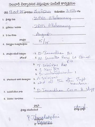 | Provided NMMS Material to Z.P. H. School - Pillalamarry 2025-26 |