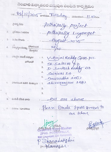 | Provided NMMS Material to Z.P.H. School - Pothaipally 2024-25 |