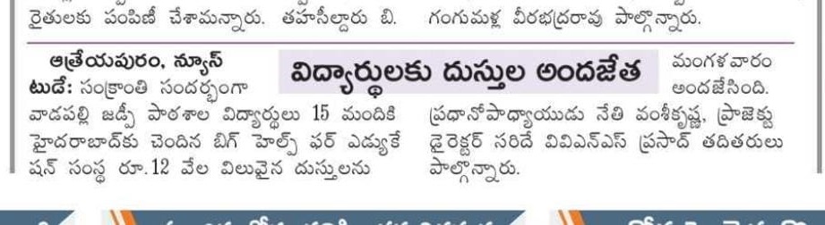 | 07-Jan-2026 News Published In AndhraJyothi On 07-Jan-2026 | | 07-Jan-2026 News Published In AndhraPrabha On 07-Jan-2026 | | 23-Jul-2025 Material Distribution for the Month of June - 2025 | | 07-Jan-2026 News Published In Eenadu On 07-Jan-2026 | | 07-Jan-2026 News Published In Majornews On 07-Jan-2026 | | 23-Jul-2025 Material Distribution for the Month of June - 2025 | | 23-Jul-2025 Material Distribution for the Month of June - 2025 | | 07-Jan-2026 News Published In Vishalandhra On 07-Jan-2026 |