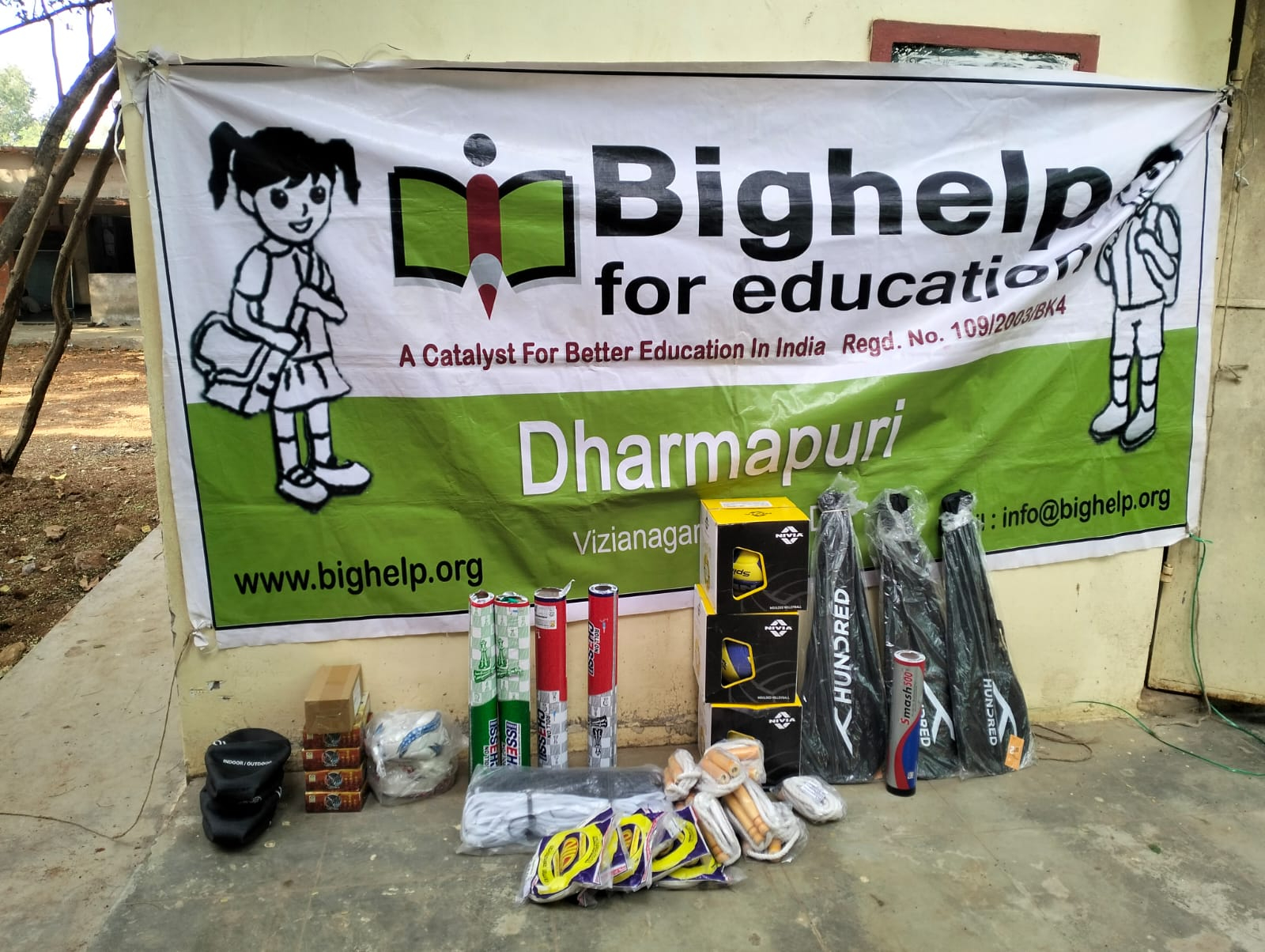 Bighelp For Education donated Volley Balls, Volley ball Net, Basket balls, Wall Mountable Hoops, Cricket Kit Hand balls, Ball-Badminton Rackets, Badminton Cocks and badminton Net to Zilla Parishad High School, Dharmapuri, Vizianagaram district, Andhra Pradesh to support the organization of various sports and games. This initiative aims to promote physical fitness, teamwork, and sportsmanship among the students.